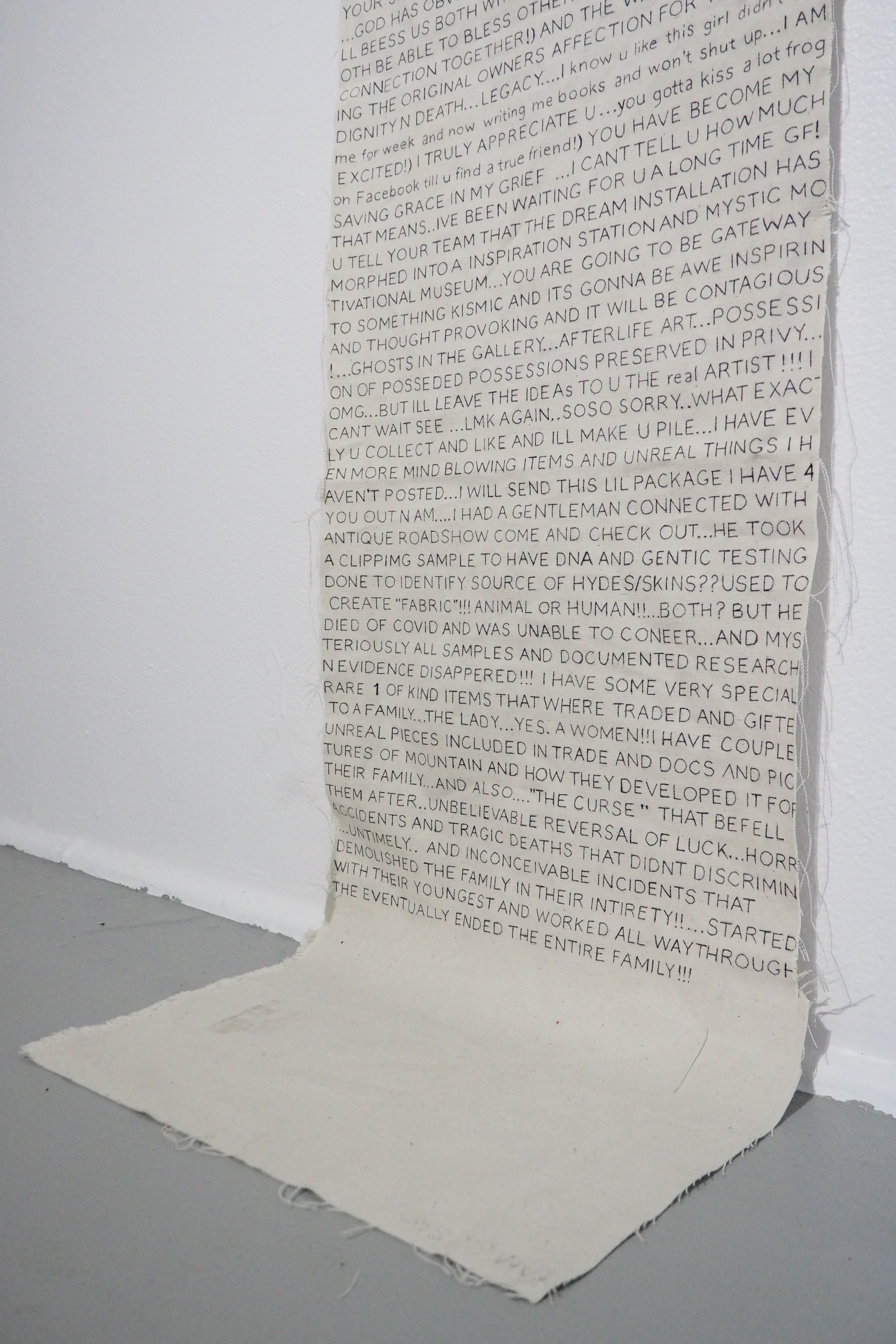 PLEASE LET ME IN is a piece of object-spatial theatre, an environmental performance in which gallery-goers become a character in the sticky world of existential mystery constructed by Cannon and Rubio, gathering the threads between self and divine, intimate and unknowable, bedroom and black hole.